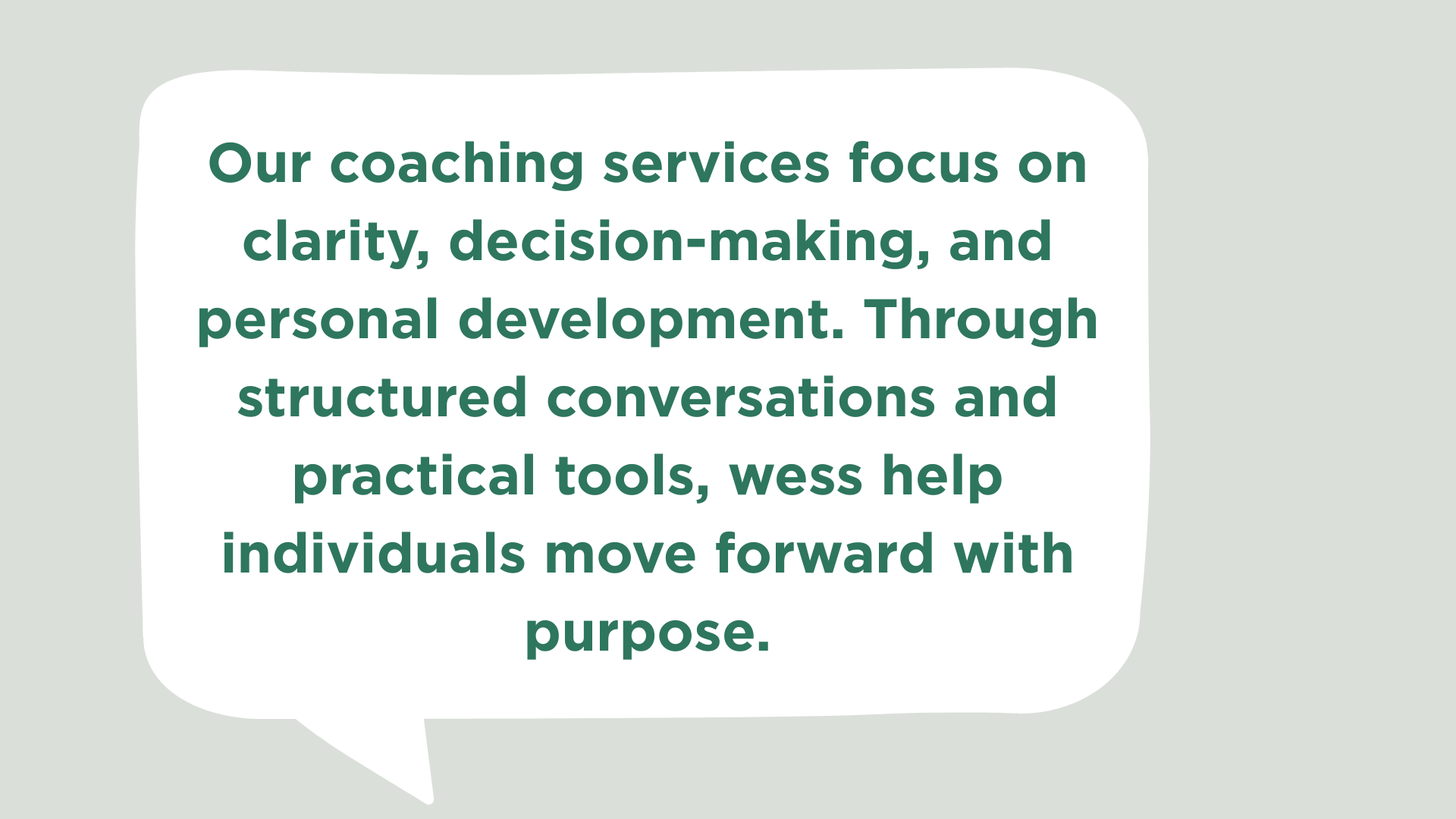 For professionals seeking change, growth, or direction. We support you in clarifying your goals, strengthening your skills, and navigating transitions in a way that aligns with your values and long-term vision.